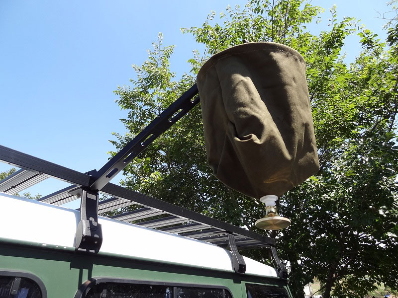 An dieser Dusch - Halterung von Frontrunner kann zum Beispiel eine Solardusche oder ein Wassersack aufgehängt werden. Sie wird am Dachträger montiert. Der Halter kann nach Gebrauch zusammengeklappt werden. Der Tragarm passt dann z.B. in eine Wolf Pack Box oder auch einfach nur unter den Sitz.
