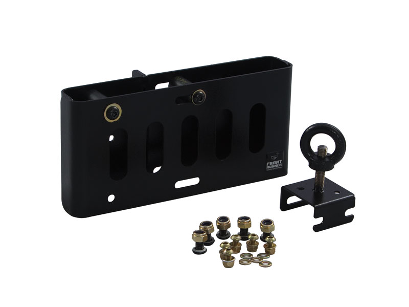 Diese Axthalterung von Frontrunner aus Edelstahl (schwarz pulverbeschichtet) sichert den Axtkopf in einem Käfig (absperrbar). Der Halter wird in der T-Nut des Rahmens des SLIMLINE II - Dachträgers verschraubt, ist aber auch an anderen Trägern verwendbar.