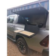 Dieser neue ausklappbare Tisch wurde speziell für das Rhinoman Hardtop konstruiert. Er wird in der Regalbox unter einer der seitlichen Klappen angebracht und dient als Ablage für den Kocher, Geschi...