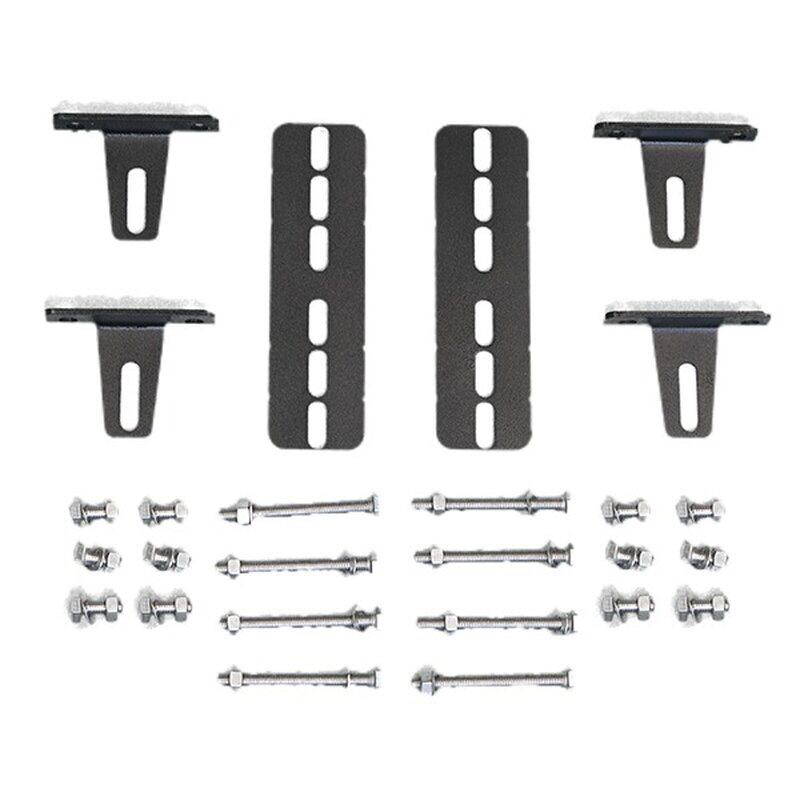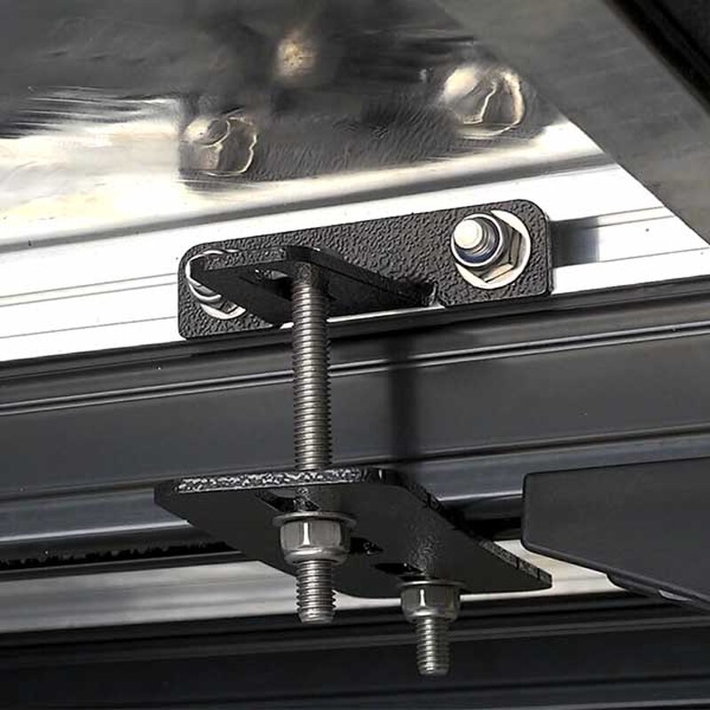 Diese Verbindungshalterungen dienen zur Befestigung der Dachzelte von The Bush Company an den Dachträgern (Querträger). Für die sichere Befestigung des Dachzeltes empfehlen wir mindestens vier Lastenträger, für die Sie insgesamt 8 Halterungen (4 Sätze zu je 2) benötigen. Die Halterungen bestehen aus 3 mm dickem Edelstahl und sind schwarz pulverbeschichtet. In jedem Paket befinden sich 2 Halterungssätze sowie Edelstahlschrauben, Unterlegscheiben und Nylock-Muttern, die zur Befestigung erforderlich sind.