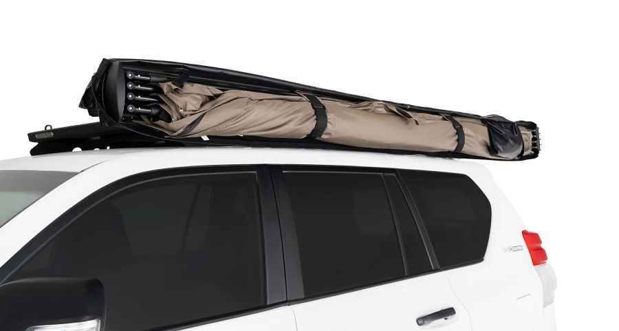 Die RHINORACK BATWING ist eine Markise, die sich in 2 Minuten von einer Person aufbauen lässt.