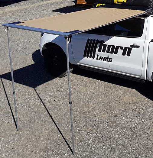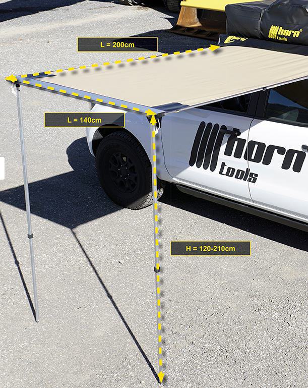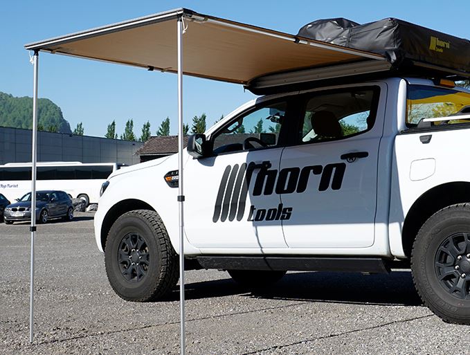 Offroad Markise für das Heck, aber auch als Seitenmarkise etwa für PickUps verwendbar - der ideale Sonnenschutz für Camper .
