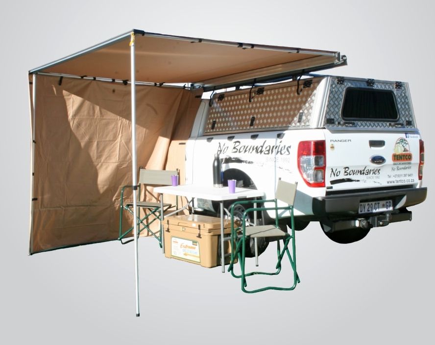 Der südafrikanische Zelthersteller TENTCO hat verschiedene Markisen im Programm, die äußerst robust aber dennoch leicht sind. So hat der größte Zelthersteller Afrikas neben den beliebten und bewährten Sackmarkisen in 2 Meter und 2,50 Meter Breite für die Fahrzeugseite auch eine Markise, die sowohl wahlweise an der Seite aber auch am Fahrzeugheck einsetzen können.