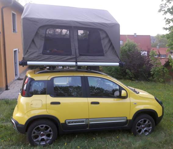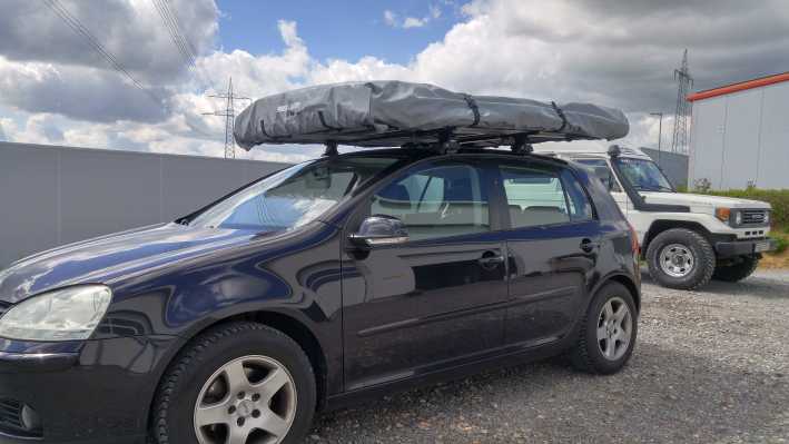 Stellen Sie sicher, dass das Dach Ihres Fahrzeugs eine entsprechend freigegebene Dachlast hat, die höher ist als das Gewicht des Zeltes.
