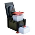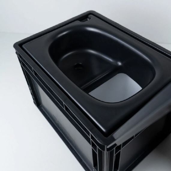 Die BOXIO - TROCKENTOILETTE besteht aus leicht zu reinigendem Kunststoff. Hierbei hat der Hersteller bei Einkauf und Entwicklung auf Nachhaltigkeit geachtet und arbeitet deshalb mit in Deutschland gefertigten Euroboxen, die aus recyceltem Kunststoff gefertigt sind. Weiterhin wird der Trenneinsatz ebenfalls in Deutschland aus einem Regenerat produziert.