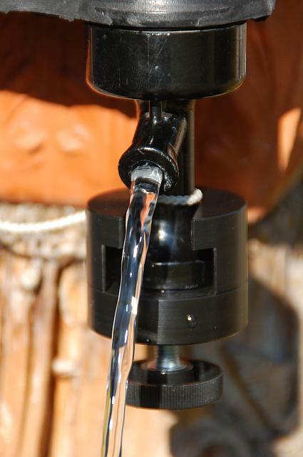 Bei der Verwendung mehrerer Wassersäcke auf einer Reise ist der Dosierer sekundenschnell gewechselt. Einfach nur abziehen, auf den neuen Wassersack aufstecken – Fertig!