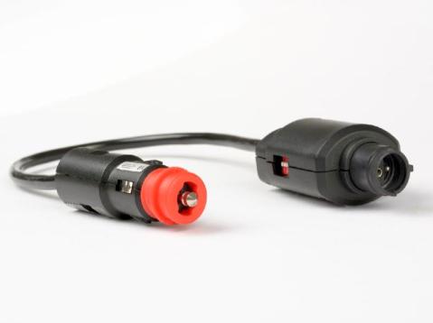 Die Ausgangsseite zur Batterie verfügt über einen KFZ-Stecker mit integrierter Sicherung. Wird der rote Adapter an der Spitze des Steckers entfernt, kann auch eine KFZ-Steckdose verwendet werden.