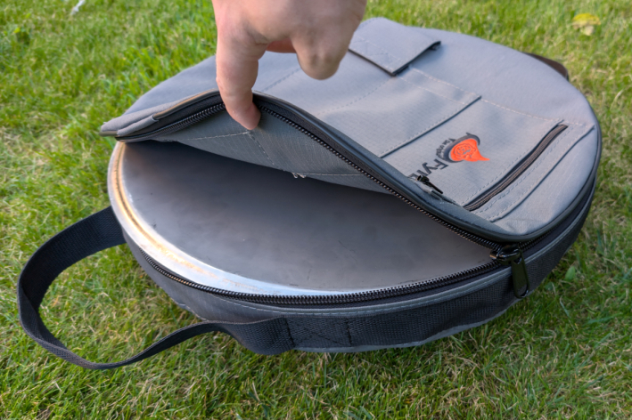 - eine robuste Tasche bietet Platz für alle Teile der FyrBowl sowie Zubehör. Asche und Restkohle werden ebenfalls dicht untergebracht.