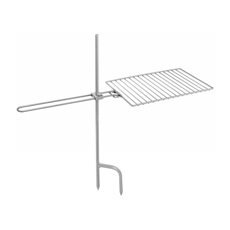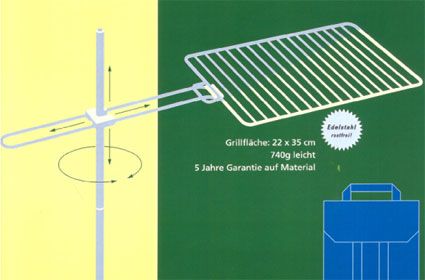 Alle Teile sind leicht zu reinigen, rostfrei und gut zu verstauen. Der Grill kann stufenlos in der Höhe verstellt werden und lässt sich, zum Be- und Entladen, bequem vom Feuer drehen.