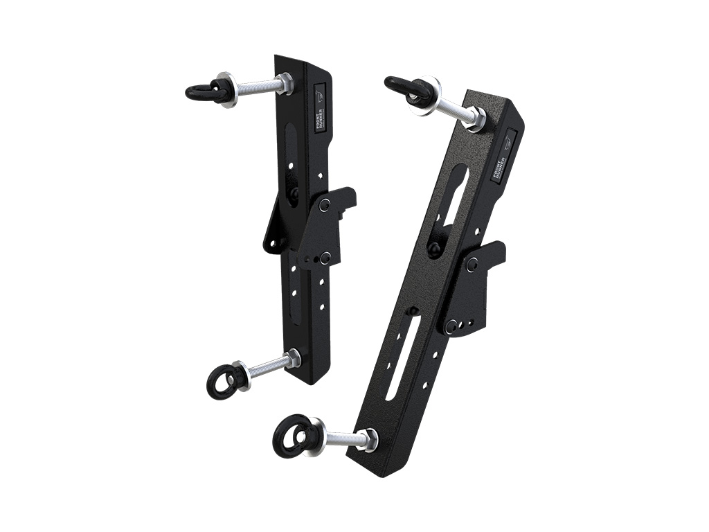 Der Halter ist in der Höhe und im Winkel regulierbar und passt daher auf verschiedene Dachträgerprofile. Die Halterung umfasst zwei unterschiedlich lange Bolzen, so dass Sie daran entweder 1 oder 2 Paar Maxtrax befestigen können.