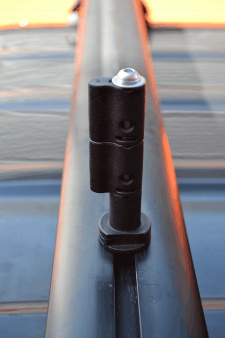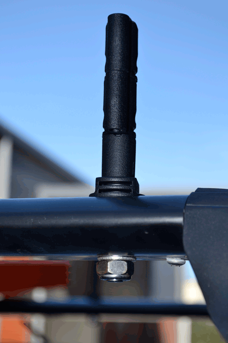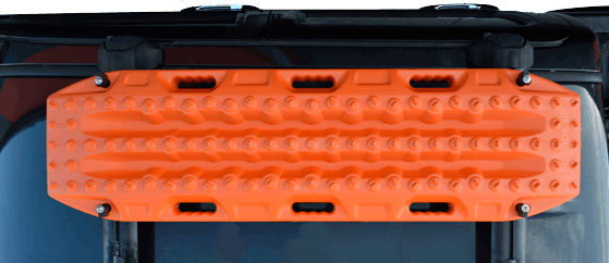Die Maxtrax können an dieser Halterung leicht mit einem Vorhängeschloss vor Diebstahl geschützt werden.